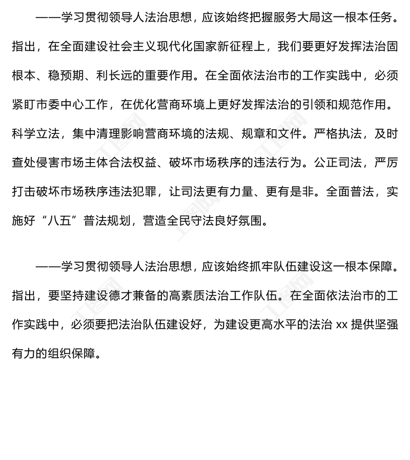 工圖網(wǎng)提供學(xué)習(xí)貫徹領(lǐng)導(dǎo)人法治思想學(xué)習(xí)體會(huì)范文供會(huì)員免費(fèi)下載。更多精彩黨課PPT素材,盡在工圖網(wǎng)。