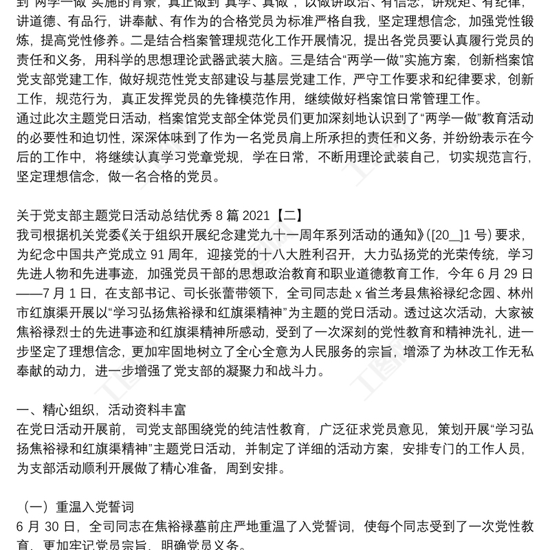 關于黨支部主題黨日活動總結優(yōu)秀8篇2021 Array