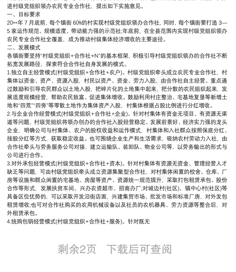 在全縣推動(dòng)村黨組織領(lǐng)辦合作社工作的實(shí)施方案 Array