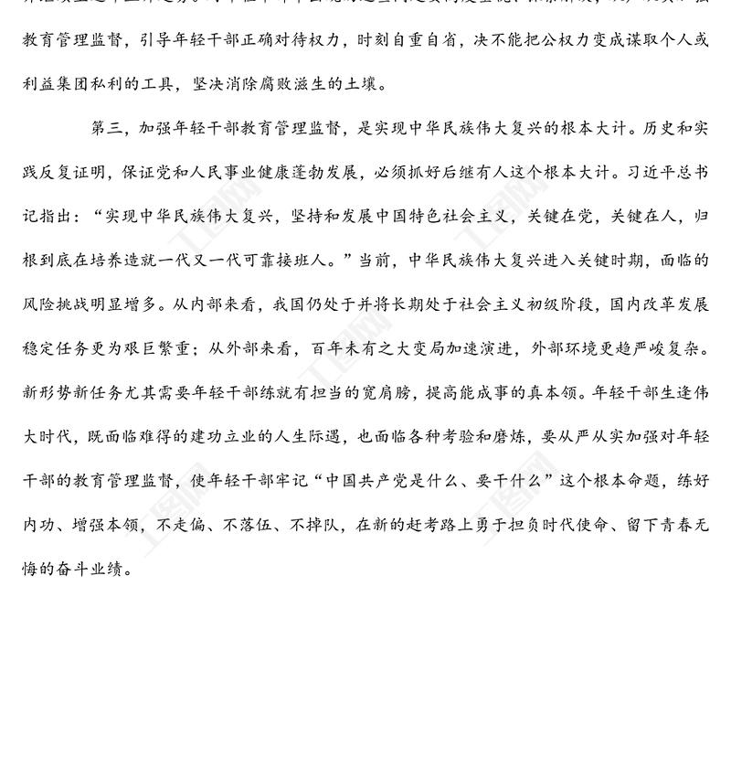 工圖網(wǎng)提供加強(qiáng)年輕干部教育管理監(jiān)督研討發(fā)言材料供會(huì)員免費(fèi)下載。更多精彩黨課PPT素材,盡在工圖網(wǎng)。