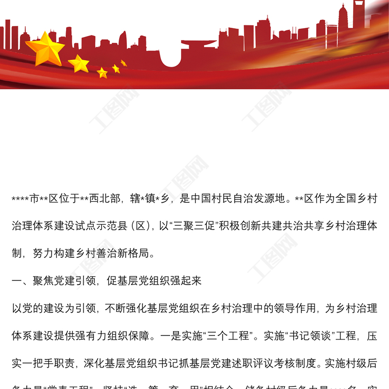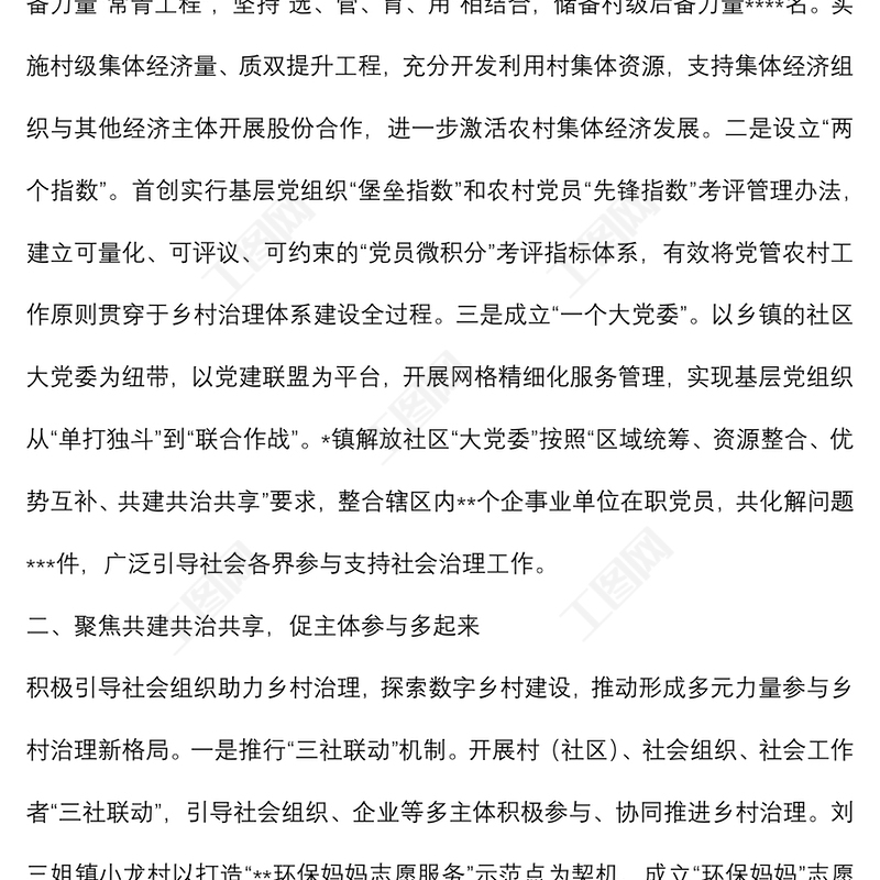 工圖網(wǎng)提供鄉(xiāng)村治理經(jīng)驗(yàn)材料:“三聚三促”構(gòu)建鄉(xiāng)村善治新格局供會(huì)員免費(fèi)下載。更多精彩黨課PPT素材,盡在工圖網(wǎng)。