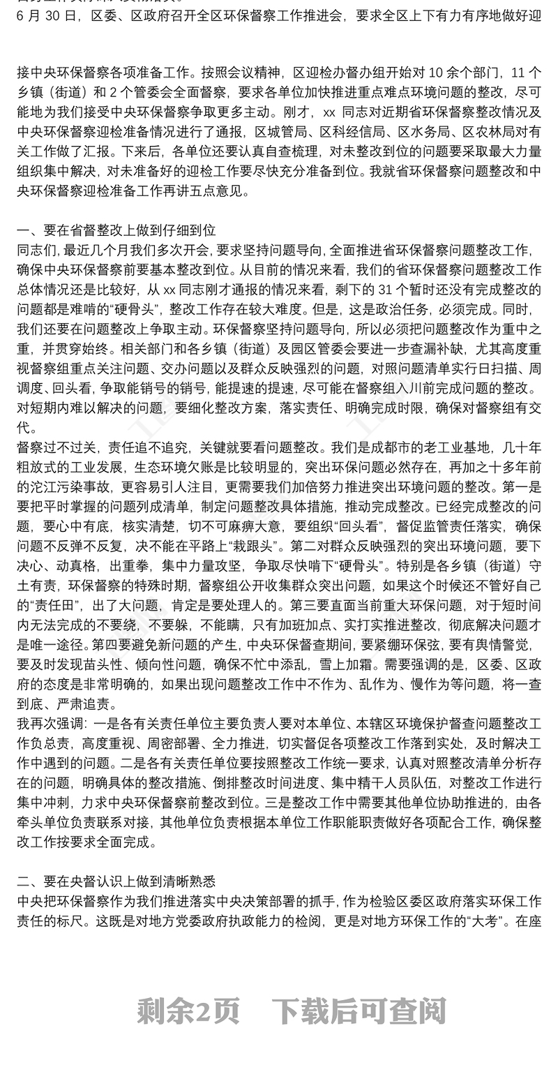 在迎接中央環(huán)保督察工作動員會議上的講話包含
