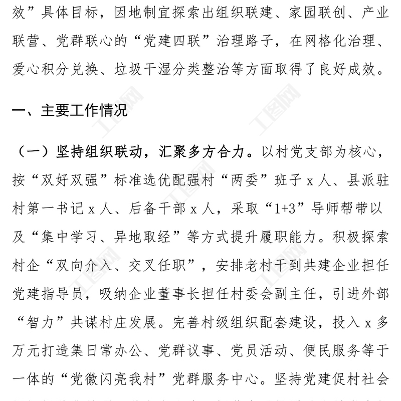 工圖網(wǎng)提供XX村2024年黨建引領(lǐng)鄉(xiāng)村振興工作總結(jié)精選范文供會員免費下載。更多精彩黨課PPT素材,盡在工圖網(wǎng)。