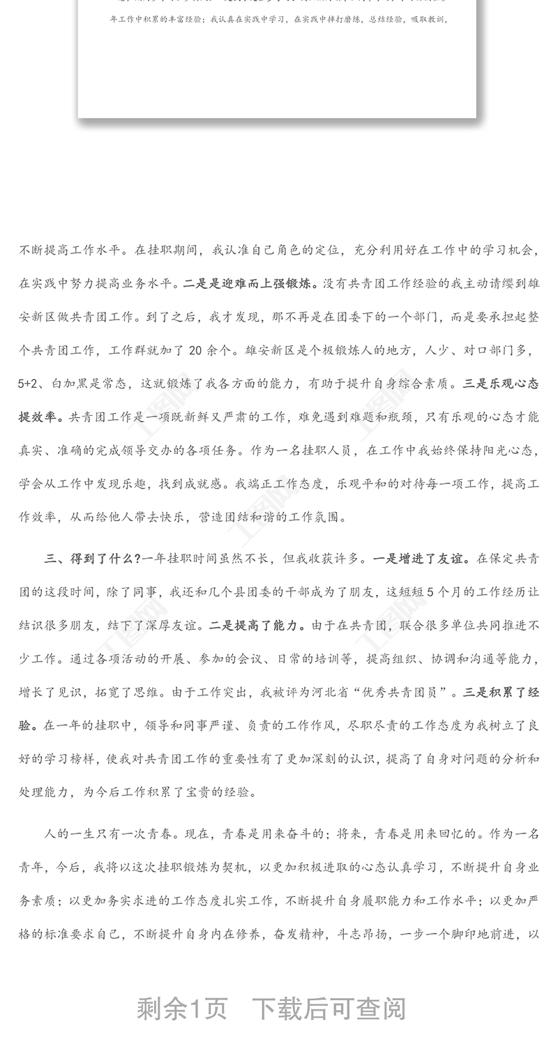 掛職鍛煉心得體會(1)