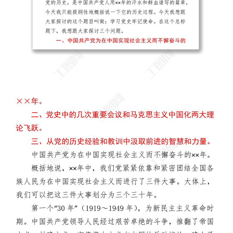 工圖網(wǎng)提供學(xué)習(xí)黨史 牢記使命——黨史黨課講稿供會(huì)員免費(fèi)下載。更多精彩黨課PPT素材,盡在工圖網(wǎng)。