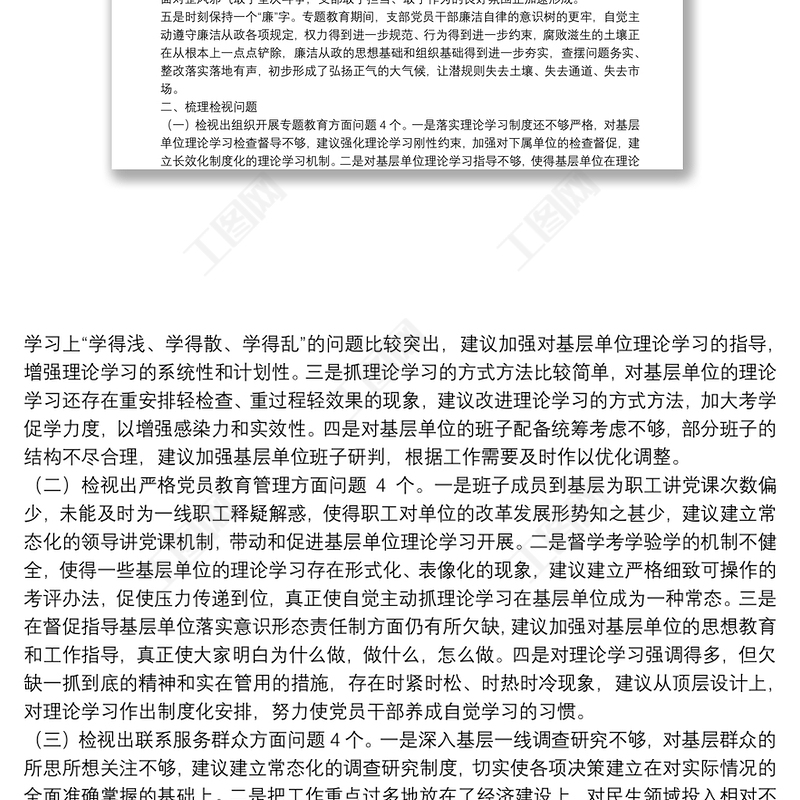 基層黨支部專題教育組織生活會(huì)檢視剖析材料