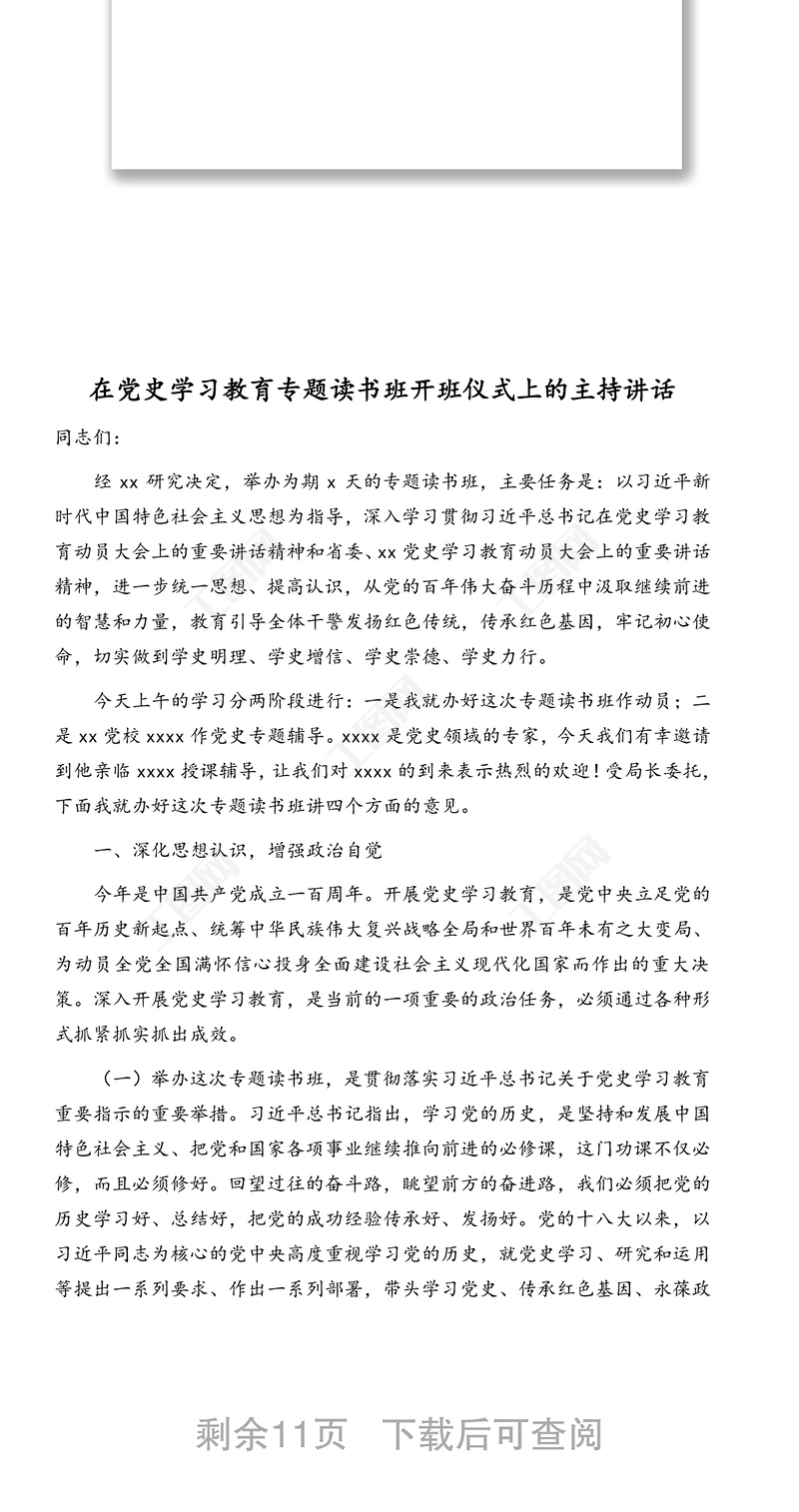 黨史學(xué)習(xí)教育專題讀書班開班儀式上的主持講話、開班講話、結(jié)束時(shí)的總結(jié)講話匯編(3篇),黨史學(xué)習(xí)教育,公文范文 Array