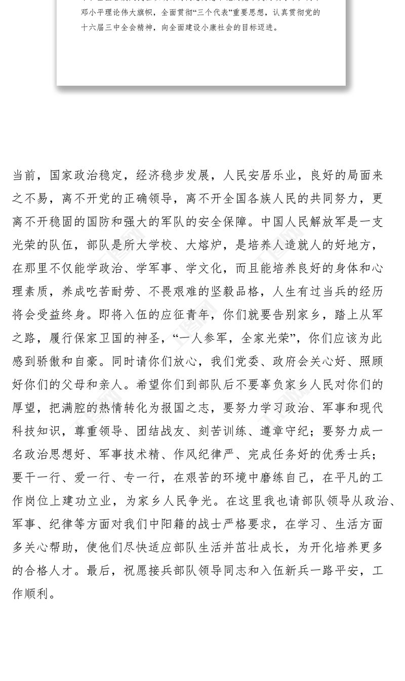 工圖網提供2021縣長在歡送新兵大會上的講話供會員免費下載。更多精彩黨課PPT素材,盡在工圖網。