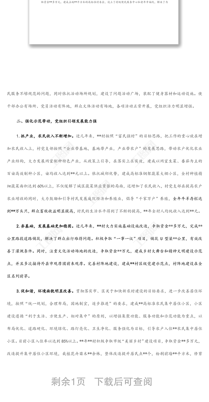 工圖網(wǎng)提供村先進基層黨組織事跡材料供會員免費下載。更多精彩黨課PPT素材,盡在工圖網(wǎng)。