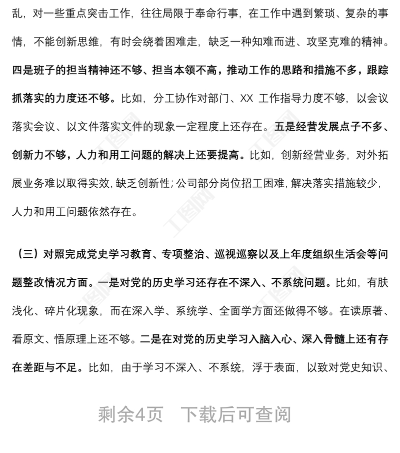 工圖網(wǎng)提供國企黨支部領(lǐng)導(dǎo)班子2021年度組織生活會(huì)對(duì)照檢查材料供會(huì)員免費(fèi)下載。更多精彩黨課PPT素材,盡在工圖網(wǎng)。