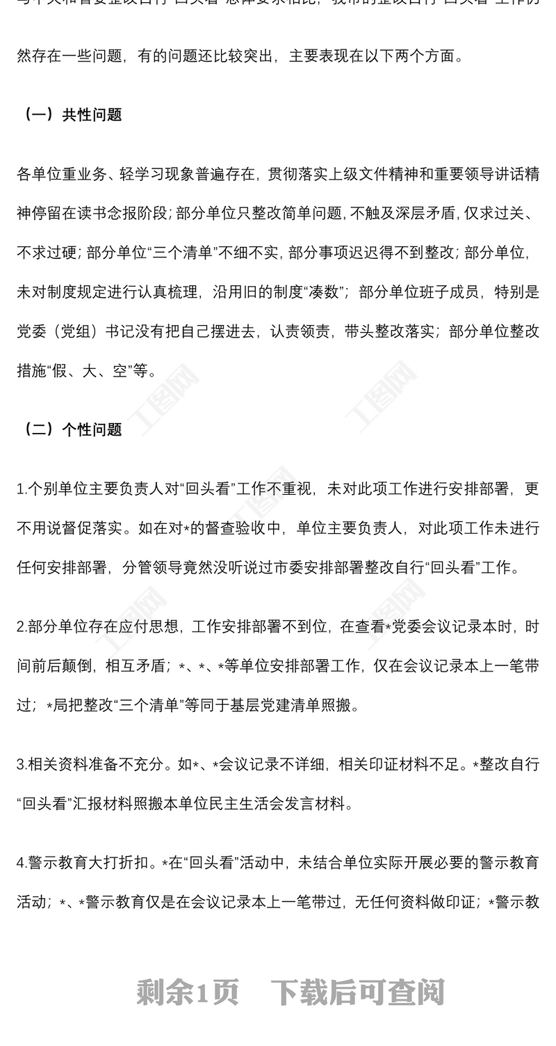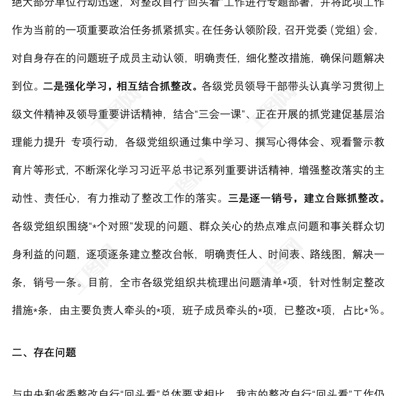 2022政治生態(tài)分析研判反饋問題整改方案2022巡察反饋問題整改專題民主生活會(huì)個(gè)人對(duì)照檢查材料2022涉糧巡查反饋問題整改專題民主生活會(huì)個(gè)人發(fā)言2022開場國鐵集團(tuán)黨組巡視反饋問題整改回頭看情況的匯報(bào)2021年組織生活會(huì)情況通報(bào)2022黨支部書記代表支部委員會(huì)通過上年度查擺問題整改和年初承諾兌現(xiàn)情況報(bào)告2022年醫(yī)院召開民主生活會(huì)前準(zhǔn)備情況通報(bào)2023從嚴(yán)治黨督查工作匯報(bào)材料2023干部教育整頓情況通報(bào)范文2023新時(shí)代中國特色社會(huì)主義思想民主生活會(huì)情況通報(bào)2023從嚴(yán)治黨督查工作匯報(bào)