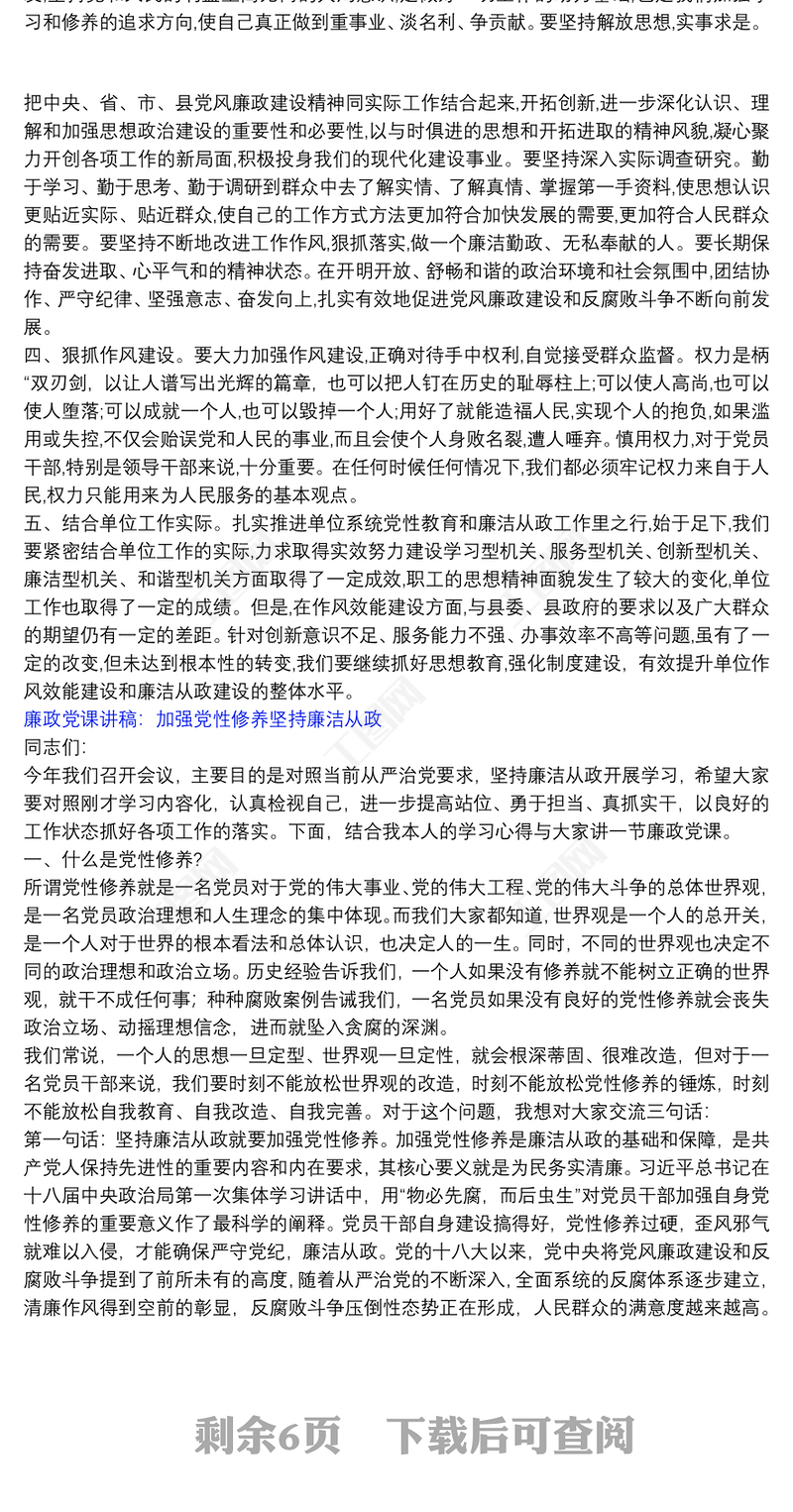 黨風廉政黨課講稿2022專題黨課講稿嚴守職業(yè)底線堅持廉潔從業(yè)黨課講稿2021黨史廉政黨課公安堅持政治建警全面從嚴治警黨課講稿2021黨史廉政黨課講稿2023市政法系統(tǒng)廉政黨課及講稿黨風廉政黨課講稿2022專題黨課2023黨日廉政黨課2023思想?yún)R報加強黨性修養(yǎng)2023加強黨性修養(yǎng)思想?yún)R報2023加強黨性修養(yǎng)的思想?yún)R報2023對照新時代中國特色社會主義思想加強黨性修養(yǎng)2023加強黨性修養(yǎng)講稿2023內(nèi)容是如何加強黨性修養(yǎng)2023加強黨性修養(yǎng)的措施2023銀行廉政警示教育黨課講稿