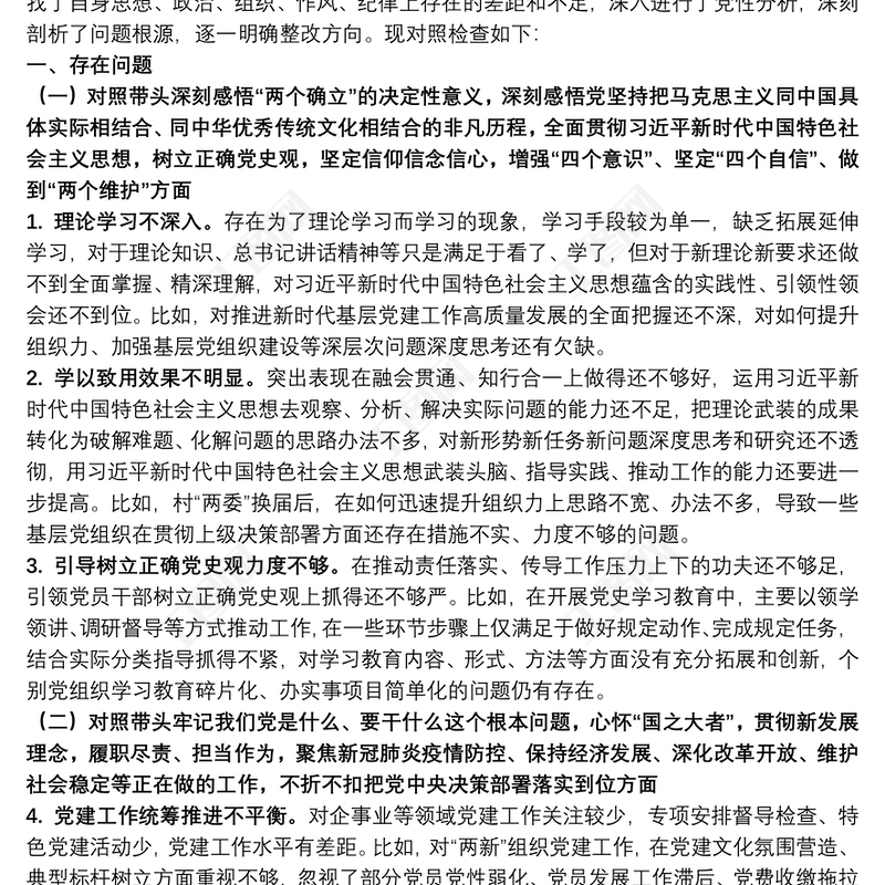 組織委員黨史學(xué)習教育專題民主生活會對照檢查材料(鎮(zhèn)級黨委)