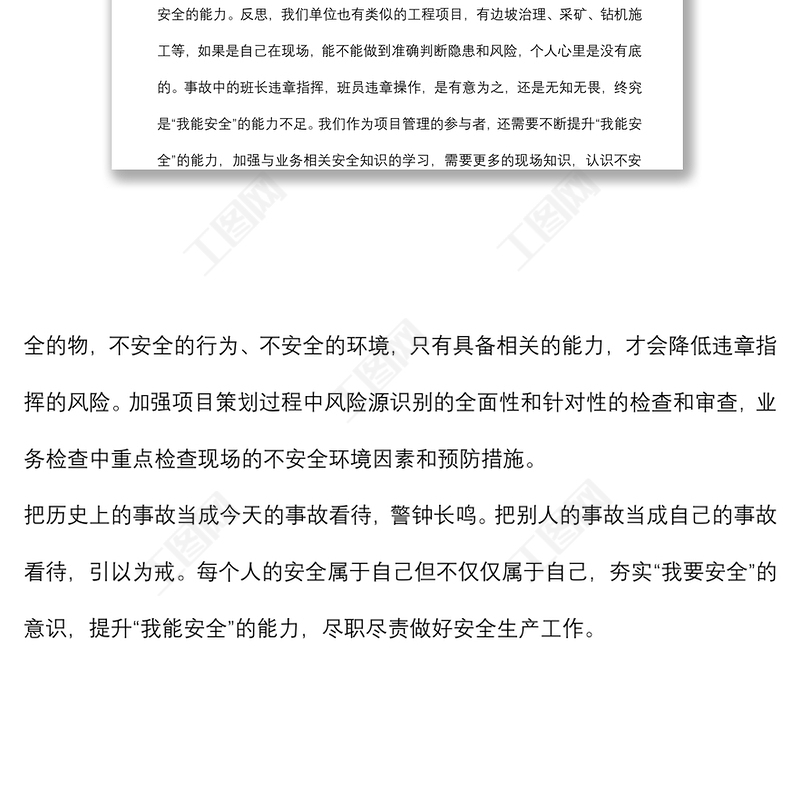 工圖網(wǎng)提供研討發(fā)言材料:夯實“我要安全”的意識 提升“我能安全”的能力供會員免費下載。更多精彩黨課PPT素材,盡在工圖網(wǎng)。