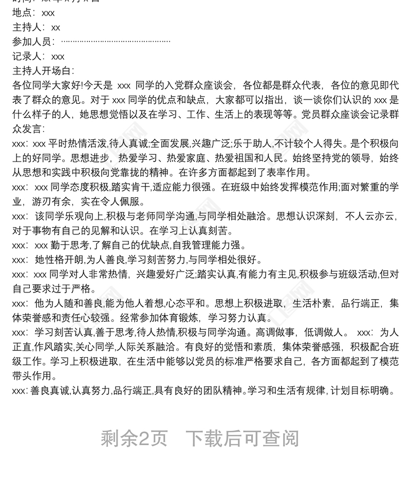 工圖網(wǎng)提供黨員群眾座談會記錄 3篇供會員免費下載。更多精彩黨課PPT素材,盡在工圖網(wǎng)。