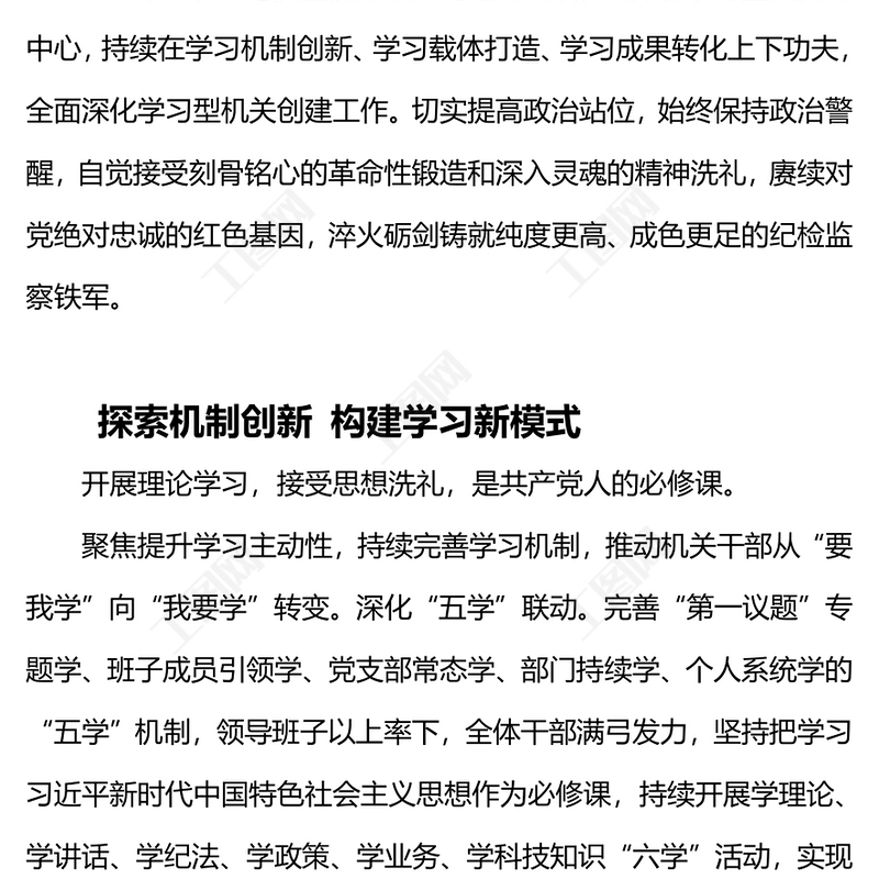 工圖網(wǎng)提供2023強(qiáng)化理論武裝筑牢政治忠誠PPT紅色簡潔深化學(xué)習(xí)型機(jī)關(guān)創(chuàng)建工作綜述模板下載(講稿)供會員免費(fèi)下載。更多精彩黨課PPT素材,盡在工圖網(wǎng)。