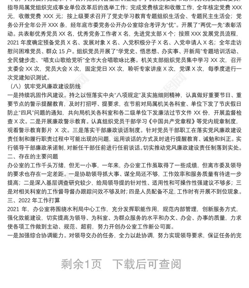 工圖網(wǎng)提供水利局辦公室2021年工作總結(jié)及2022年工作打算供會(huì)員免費(fèi)下載。更多精彩黨課PPT素材,盡在工圖網(wǎng)。