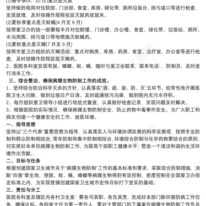 醫(yī)院病媒生物防制的工作計(jì)劃 Array
