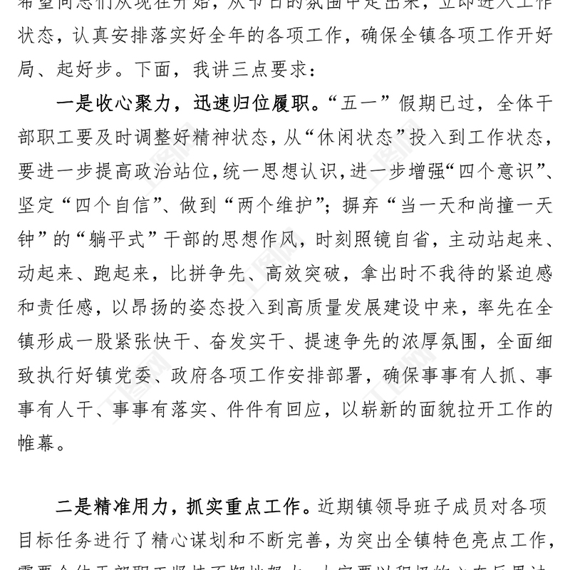> 公文范文 > 2023年“五一”節(jié)后收心會(huì)暨重點(diǎn)工作安排部署會(huì).DOCX 【圖片、文字、動(dòng)畫(huà)均可編輯】