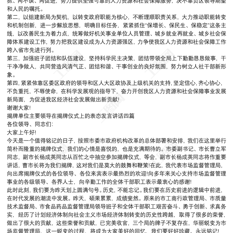 首頁 > WORD文檔 > 領導講話 > 揭牌單位主要領導在揭牌儀式上的表態(tài)發(fā)言講話四篇.DOCX 【圖片、文字、動畫均可編輯】