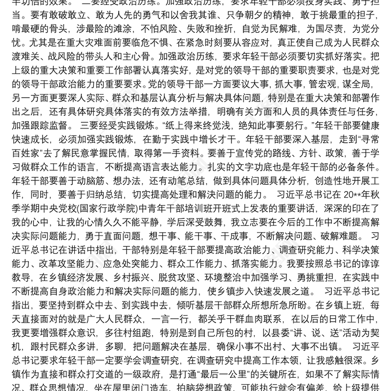 學(xué)習(xí)中青年干部培訓(xùn)班開(kāi)班式講話精神心得體會(huì)