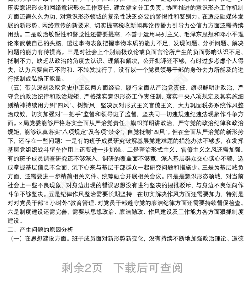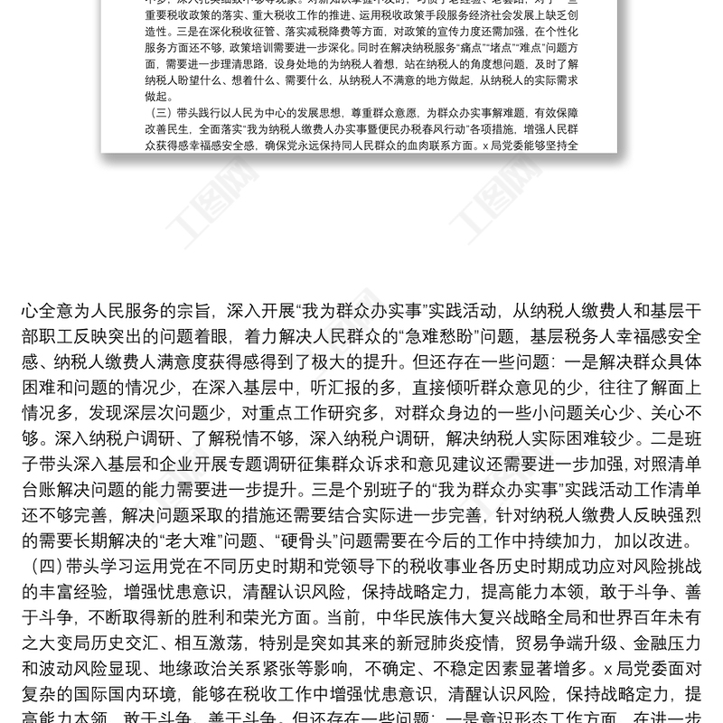 工圖網(wǎng)提供稅務局領導班子黨史學習教育專題民主生活會對照檢查材料供會員免費下載。更多精彩黨課PPT素材,盡在工圖網(wǎng)。