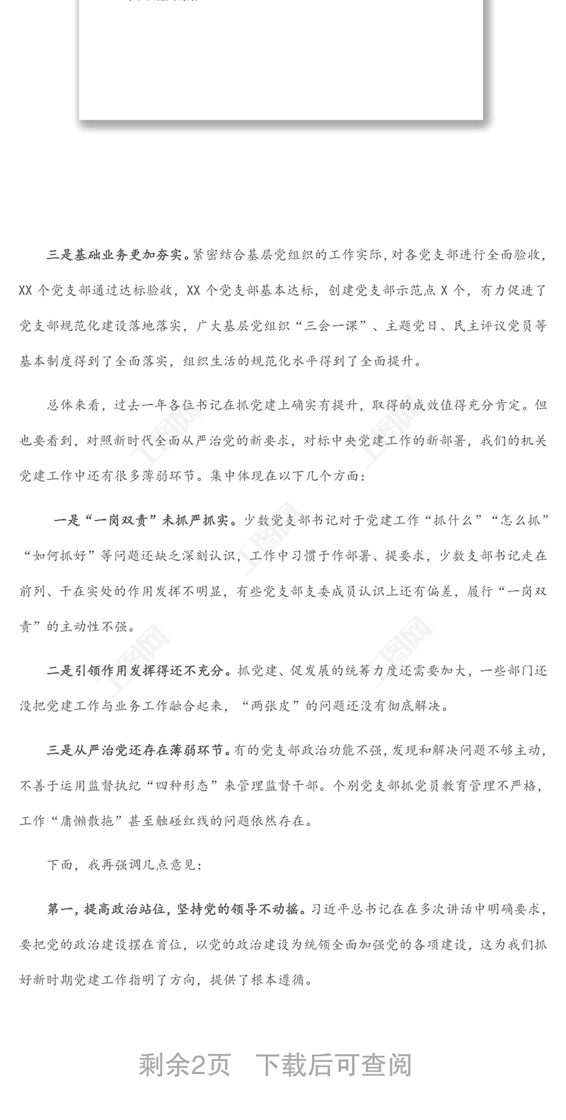 2021年度黨支部書記抓黨建工作述職評(píng)議會(huì)上的總結(jié)點(diǎn)評(píng)講話范文公司國(guó)企國(guó)有企業(yè)會(huì)議包含