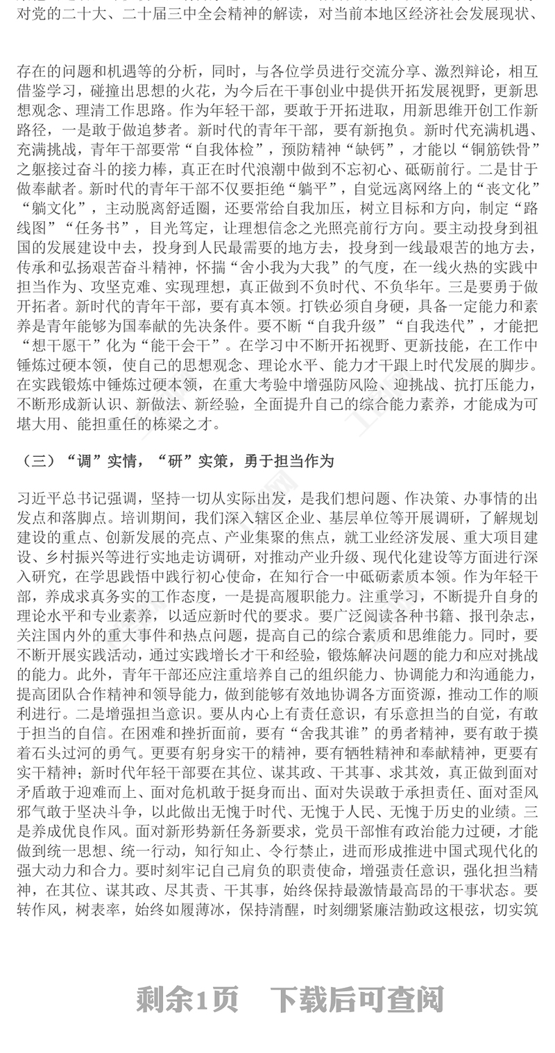 2024年青年干部培訓(xùn)班個人總結(jié)范文