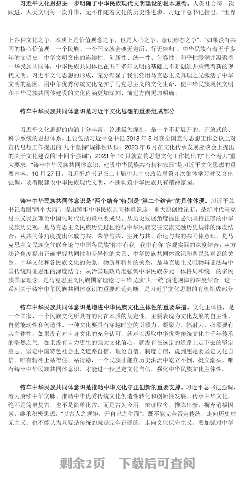 > 黨課講稿 > 2023鑄牢中華民族共同體意識ppt大氣簡潔深入學(xué)習(xí)習(xí)近文化思想民族融合篇基層黨組織黨支部黨員干部學(xué)習(xí)黨課課件(講稿).DOCX 【圖片、文字、動畫均可編輯】