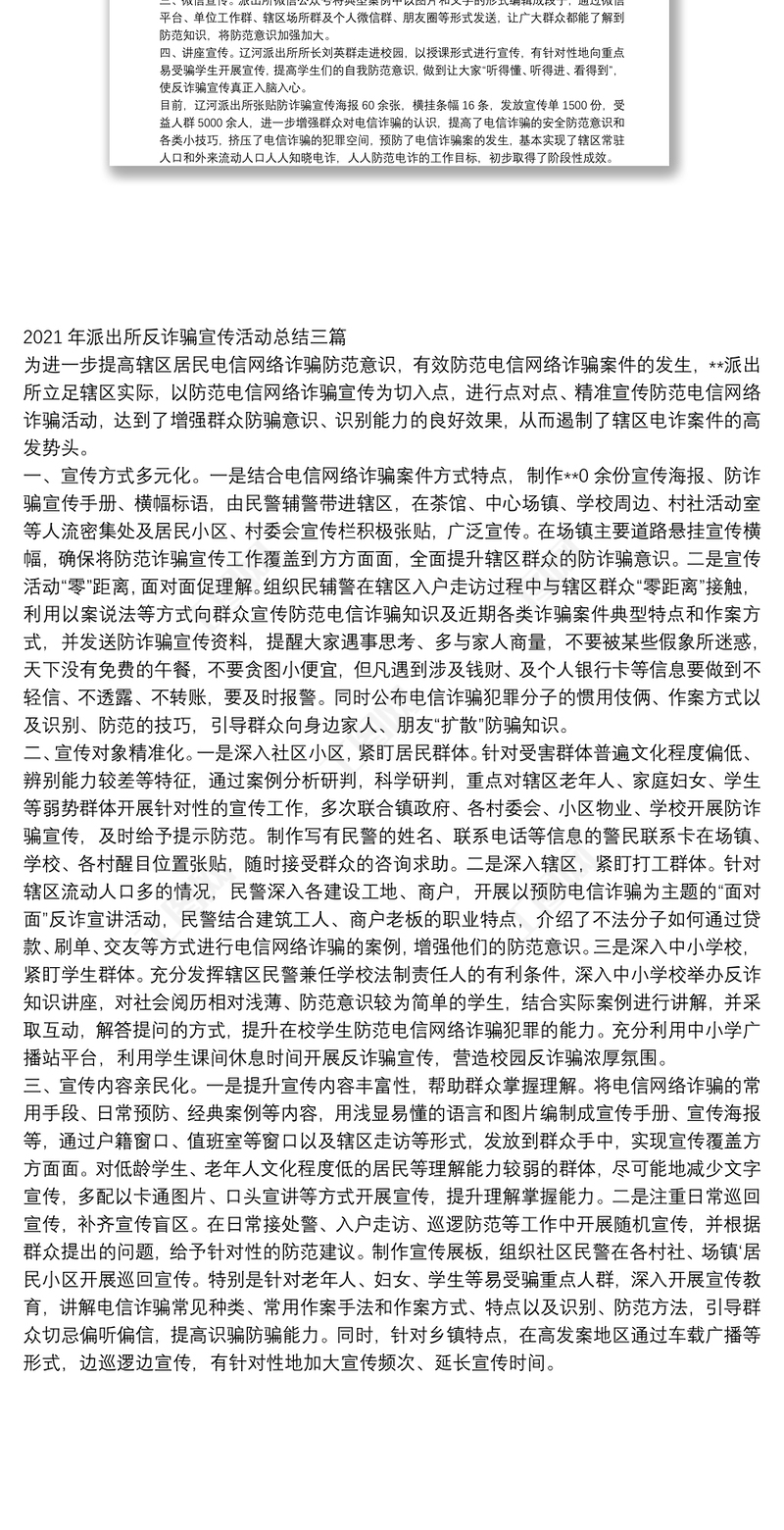 2021年派出所反詐騙宣傳活動(dòng)總結(jié)三篇