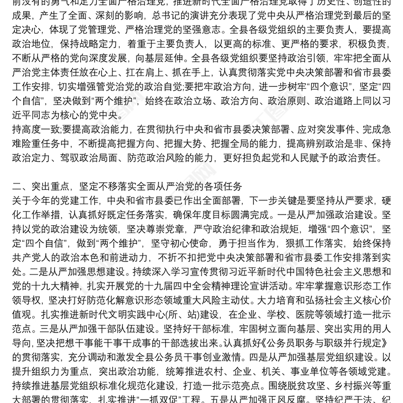 2021【從嚴(yán)治黨】全面從嚴(yán)治黨主體責(zé)任研討發(fā)言包含