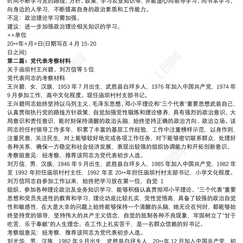 黨代表候選人考察材料_黨代表考察材料