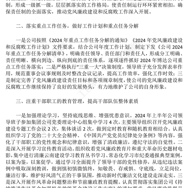 2024年上半年黨風廉政建設和反腐敗工作總結范文