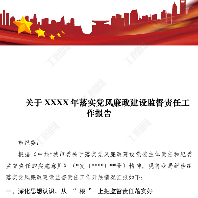 工圖網(wǎng)提供2021關(guān)于XXXX年落實(shí)黨風(fēng)廉政建設(shè)監(jiān)督責(zé)任工作報(bào)告 供會(huì)員免費(fèi)下載。更多精彩黨課PPT素材,盡在工圖網(wǎng)。