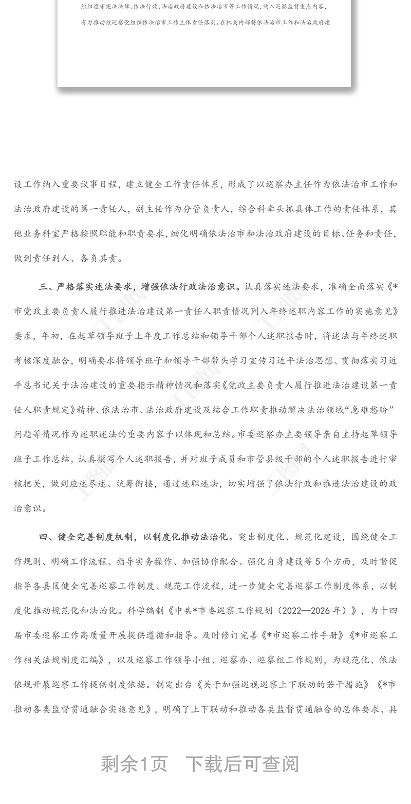 市委巡察辦2022年上半年依法治市工作總結(jié),市委巡察辦2022年上半年依法治市工作總結(jié) Array