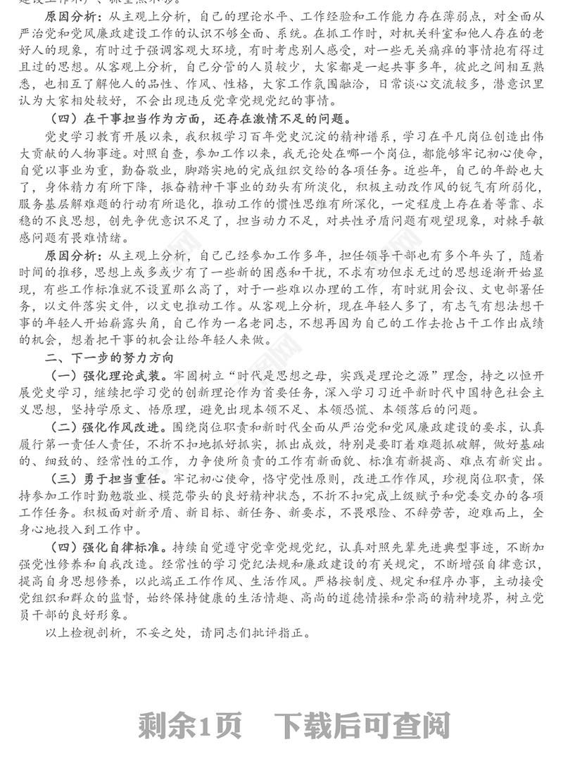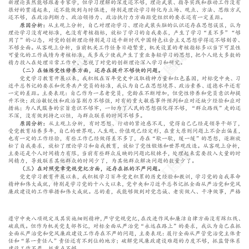 X機(jī)關(guān)黨支部書記黨史學(xué)習(xí)教育專題組織生活會個(gè)人對照檢查材料,對照檢查材料,公文范文 Array