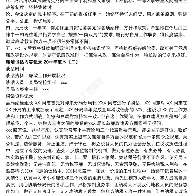 工圖網(wǎng)提供廉潔談話內(nèi)容記錄20xx年范本供會員免費下載。更多精彩黨課PPT素材,盡在工圖網(wǎng)。