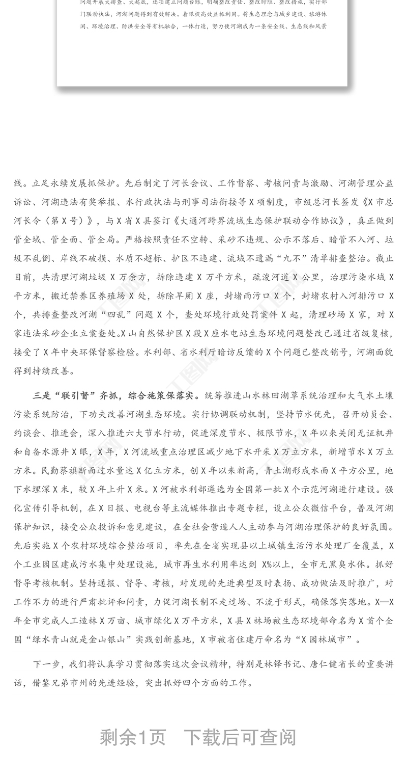 工圖網(wǎng)提供在全省總河長(zhǎng)會(huì)議上的交流發(fā)言材料供會(huì)員免費(fèi)下載。更多精彩黨課PPT素材,盡在工圖網(wǎng)。
