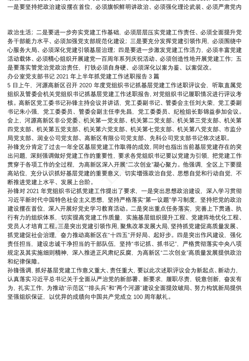 辦公室黨支部書記2021年上半年抓黨建工作述職報告3篇 Array