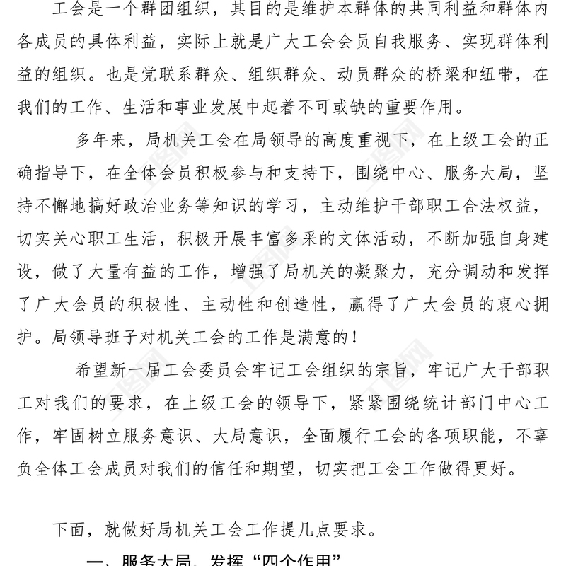 工圖網(wǎng)提供2021【領(lǐng)導(dǎo)講話】機(jī)關(guān)工會(huì)換屆大會(huì)領(lǐng)導(dǎo)講話稿供會(huì)員免費(fèi)下載。更多精彩黨課PPT素材,盡在工圖網(wǎng)。
