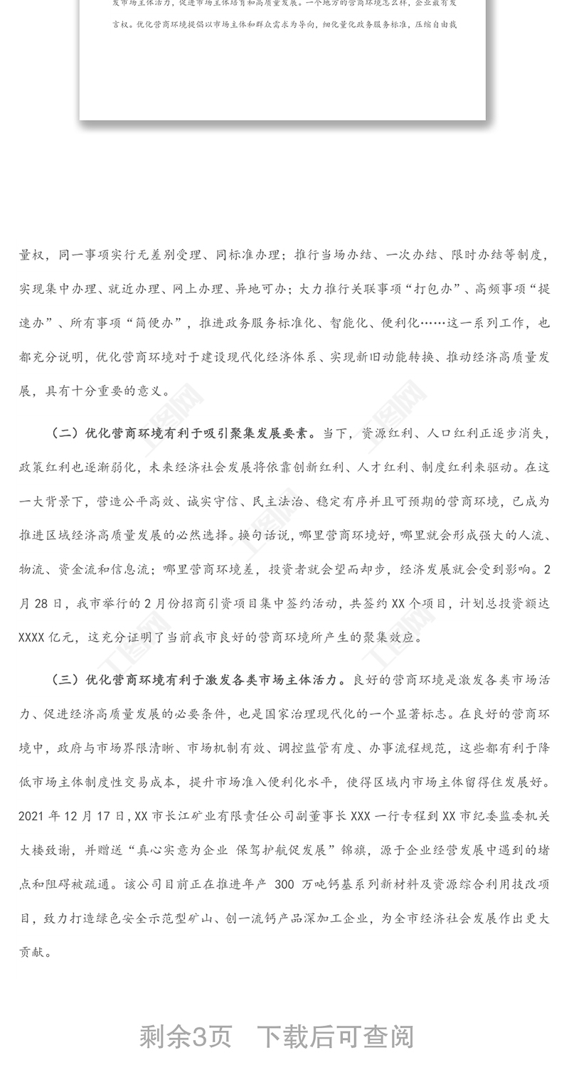 2021民警優(yōu)化營商環(huán)境自我剖析材料營商環(huán)境警示教育大會心得體會2021優(yōu)化企業(yè)營商環(huán)境以案促改對照檢查材料2022企業(yè)家在營商環(huán)境座談會上的發(fā)言稿2022損害營商環(huán)境的典型案例警示教育心得體會2022破壞營商環(huán)境典型案例個人剖析材料2022農(nóng)業(yè)農(nóng)村局優(yōu)化營商環(huán)境自檢自查報告2021教師優(yōu)化營商環(huán)境討論發(fā)言2021優(yōu)化營商環(huán)境研討交流材料2022損害營商環(huán)境問題典型案例心得體會2021法院營商環(huán)境交流發(fā)言材料2022法院優(yōu)化營商環(huán)境工作總結(jié)2022企業(yè)法院營商環(huán)境座談會發(fā)言稿2021營商環(huán)境以案促改剖析報告2022遼寧優(yōu)化營商環(huán)境建議2021縣委政法委優(yōu)化營商環(huán)境發(fā)言材料