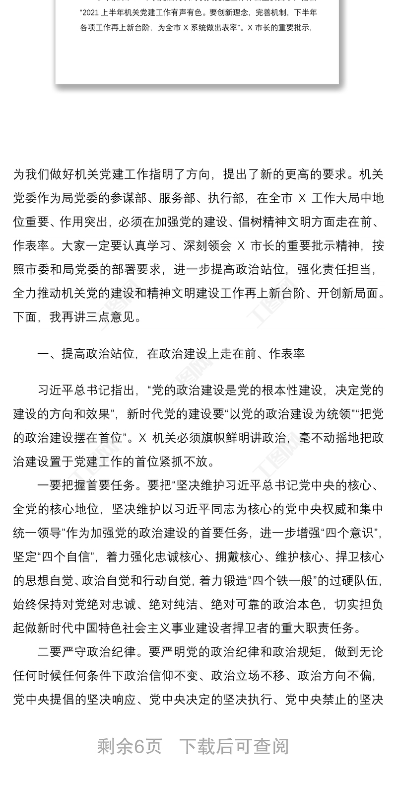 工圖網(wǎng)提供2021【原創(chuàng)】在機(jī)關(guān)黨的建設(shè)暨精神文明建設(shè)工作會(huì)議上的講話(huà)供會(huì)員免費(fèi)下載。更多精彩黨課PPT素材,盡在工圖網(wǎng)。