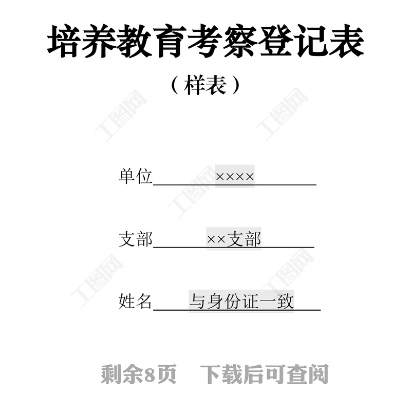 工圖網(wǎng)提供2021年入黨積極分子、發(fā)展對(duì)象培養(yǎng)教育考察登記表供會(huì)員免費(fèi)下載。更多精彩黨課PPT素材,盡在工圖網(wǎng)。