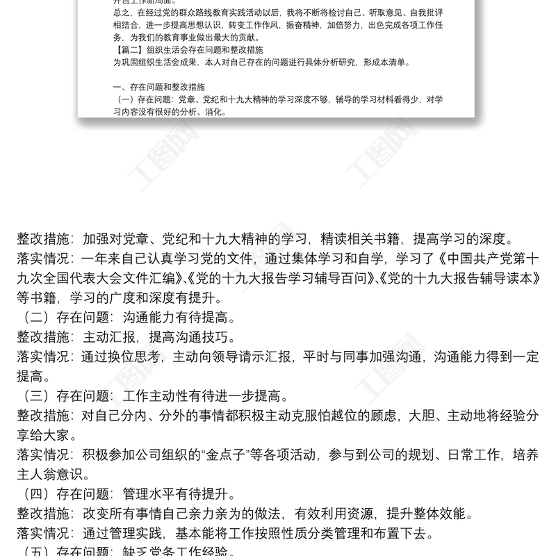 工圖網(wǎng)提供組織生活會存在問題和整改措施范文(通用20篇)供會員免費下載。更多精彩黨課PPT素材,盡在工圖網(wǎng)。