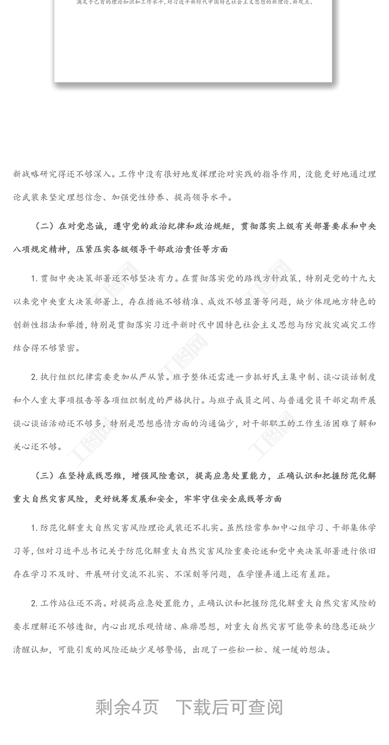 工圖網(wǎng)提供鄭州“7.20”特大暴雨災(zāi)害追責(zé)問責(zé)案件以案促改民主生活會(huì)發(fā)言供會(huì)員免費(fèi)下載。更多精彩黨課PPT素材,盡在工圖網(wǎng)。