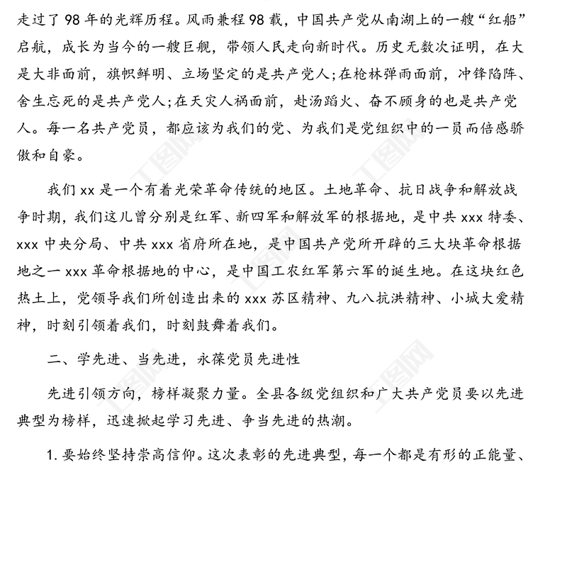 縣委書記在紀(jì)念建黨98周年暨表彰大會(huì)上的講話(七一講話),七一講話,公文 Array