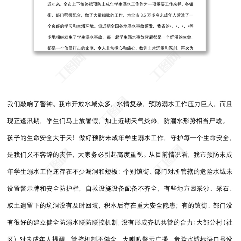 工圖網(wǎng)提供在預(yù)防未成年學(xué)生溺水工作專題會(huì)議上的講話供會(huì)員免費(fèi)下載。更多精彩黨課PPT素材,盡在工圖網(wǎng)。
