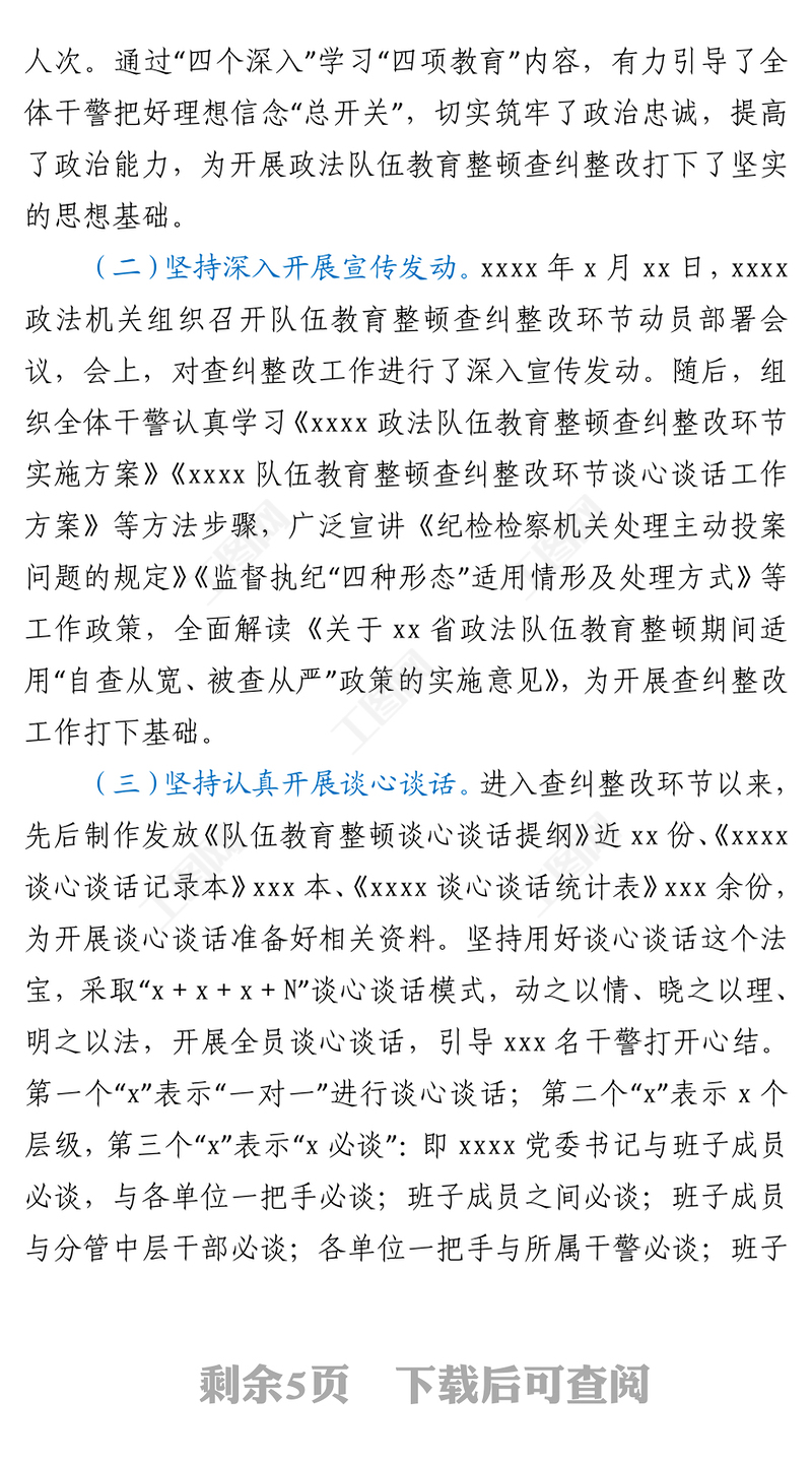 工圖網(wǎng)提供2021政法隊(duì)伍教育整頓查糾整改工作匯報材料供會員免費(fèi)下載。更多精彩黨課PPT素材,盡在工圖網(wǎng)。