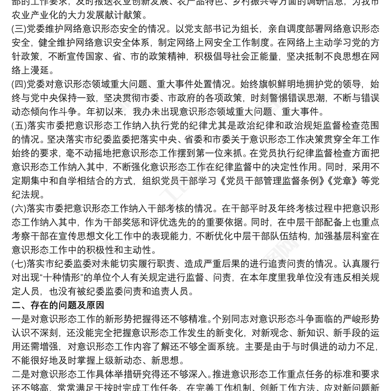 2021年意識(shí)形態(tài)工作學(xué)習(xí)材料2021黨支部書(shū)記意識(shí)形態(tài)工作述職報(bào)告2021黨委黨組網(wǎng)絡(luò)意識(shí)形態(tài)工作責(zé)任實(shí)施細(xì)則全文2021意識(shí)形態(tài)工作組織生活會(huì)材料2021網(wǎng)絡(luò)意識(shí)形態(tài)工作分析研判報(bào)告2022融媒體中心意識(shí)形態(tài)工作總結(jié)公安意識(shí)形態(tài)工作計(jì)劃2021中學(xué)2021年意識(shí)形態(tài)工作總結(jié)2021年個(gè)人意識(shí)形態(tài)工作述職2021車(chē)隊(duì)意識(shí)形態(tài)工作總結(jié)2021意識(shí)形態(tài)工作專(zhuān)題研究學(xué)習(xí)材料社區(qū)2021年上半年意識(shí)形態(tài)工作總結(jié)2021二級(jí)學(xué)院意識(shí)形態(tài)工作自查報(bào)告消防大隊(duì)2021年意識(shí)形態(tài)工作總結(jié)2022年第二季度意識(shí)形態(tài)工作報(bào)告
