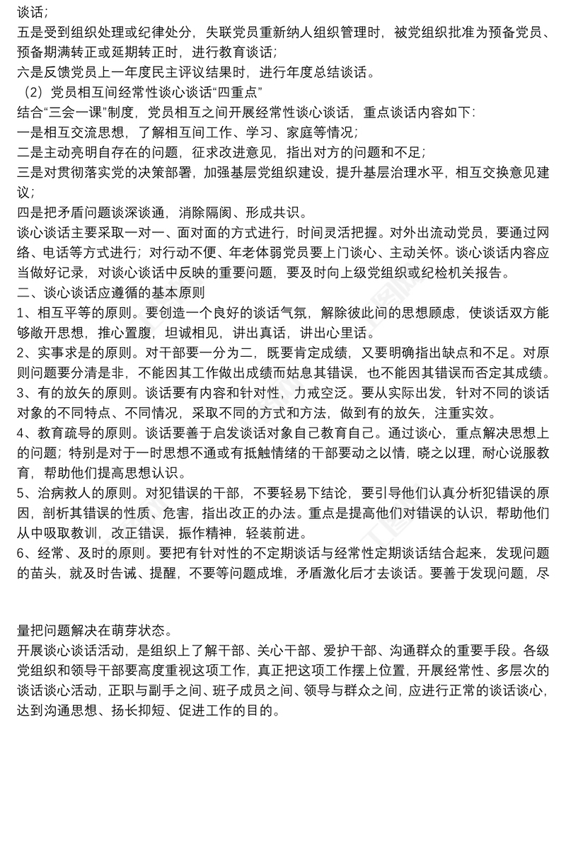 2021結(jié)合黨史教育開展談心談話提綱2021黨員談心談話 學(xué)黨史2022談一下嚴(yán)禁違規(guī)宴請(qǐng)飲酒問題專項(xiàng)整治談心談話記錄2022年黨支部與倉(cāng)庫(kù)保管員談心談話內(nèi)容2022退休人員黨支部談心談話內(nèi)容記錄2021談心談話對(duì)黨史學(xué)習(xí)教育的認(rèn)識(shí)2022黨支部紀(jì)檢委員談心談話記錄2021黨史學(xué)習(xí)教育黨支部委員之間交心談心的談話記錄2022國(guó)企黨支部談心談話記錄2022民航談心談話心得黨支部委員談心談話內(nèi)容記錄20222021黨史學(xué)習(xí)教育談心談話座談會(huì)通知2023新時(shí)代中國(guó)特色社會(huì)主義思想談心談話記錄談話要點(diǎn)2023廉政談話談心談話內(nèi)容2023黨支部書記談心談話記錄2023談心談話和廉政談話的內(nèi)容
